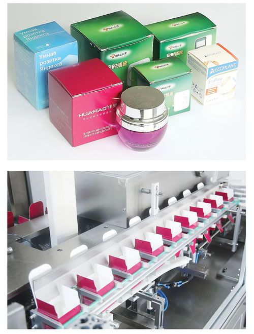 The machine is new and further improvement model on the basis of advanced technology at home and abroad, it is integrated high-tech product in the field of machine, electricity, gas and light.This machine is suitable for cartoning packaging of pharmaceutical aluminum plate, medicine bottles, oral liquid, plaster, facial mask, cosmetics and all kinds of electronic products, daily necessities, and similar items,the machine can automatically complete manual folding, paper box opening, goods cartoning, batch number printing, sealing and other work.The machine can be used alone, and it also can be connected with other equipment for forming production line.